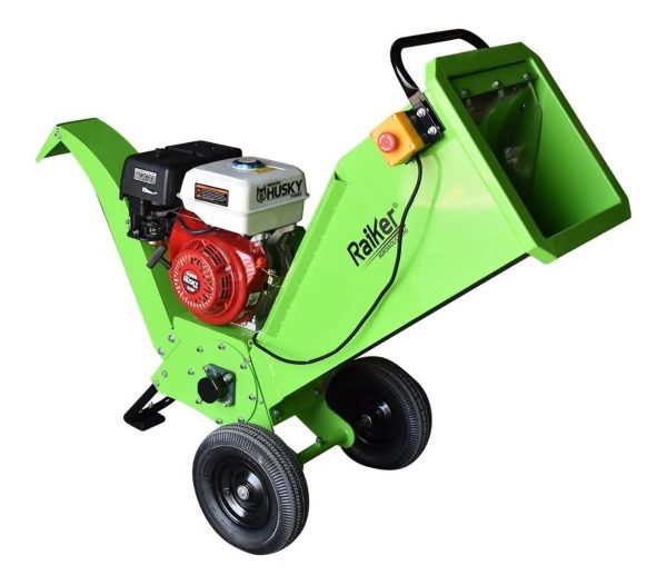 NUEVA Biotrituradora marca Raiker con motor SWEDISH HUSKY POWER de 9 hp y diámetro de corte de 7.5 cm (ramas y troncos). Rueda 12″. Deflector 80 grados ajustable.